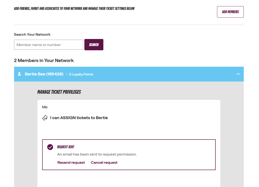 Please note, if your the fan you are trying to manage does not have an email address associated to their fan account (junior/ shared account), please contact our box office.