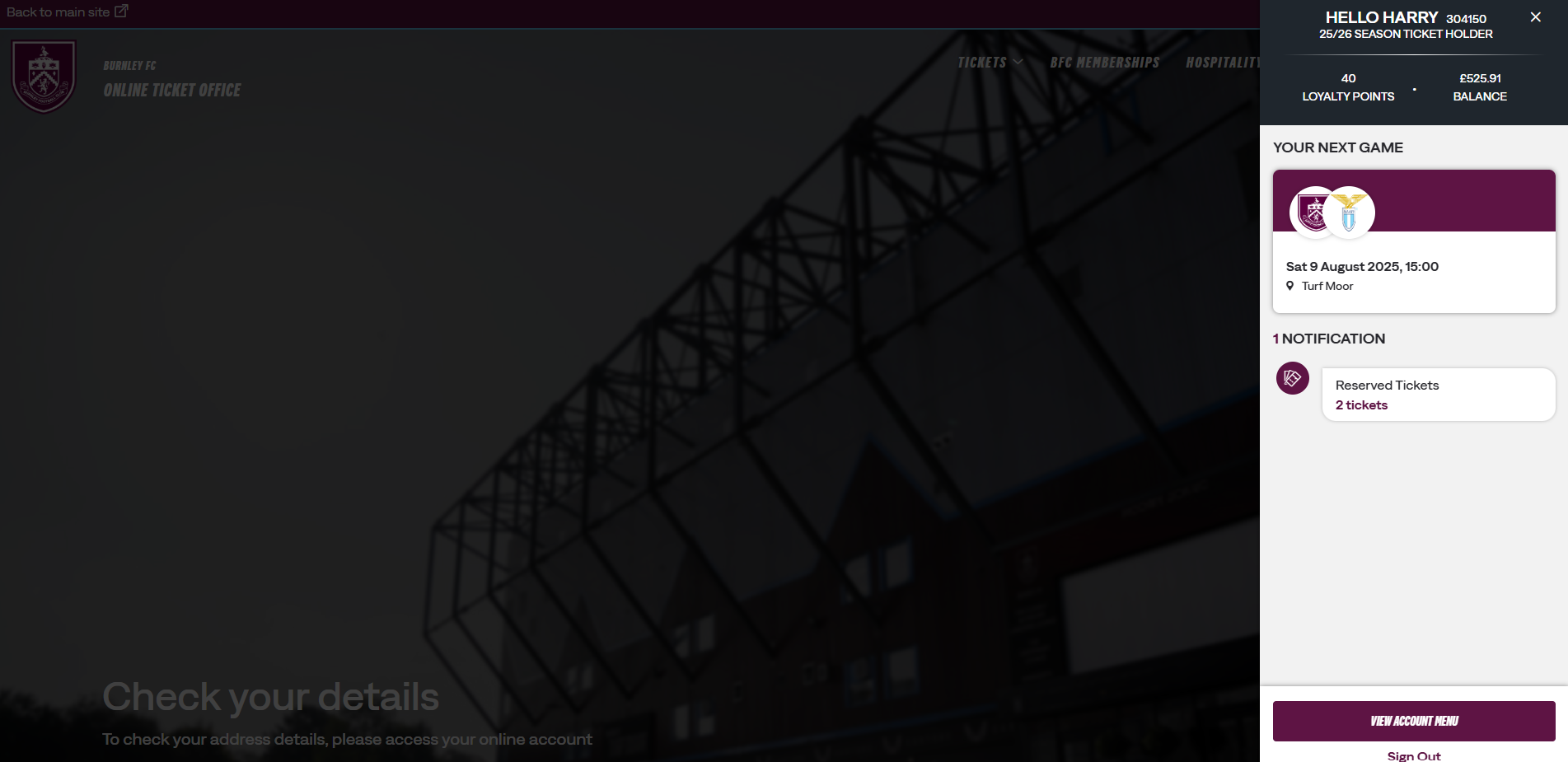 (Alternatively, to view your reserved tickets, click the account icon > view acount menu > ticketing > reserved seats.)