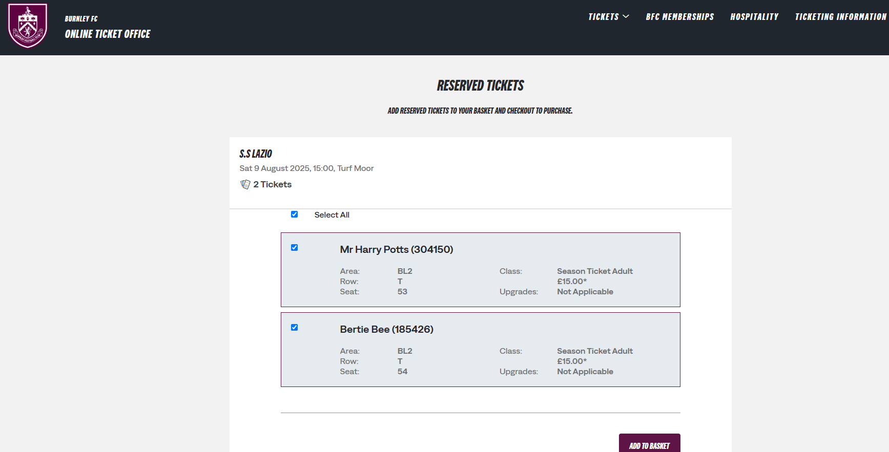 Please note, to reserve tickets for your friends and family, you must be managing their account.