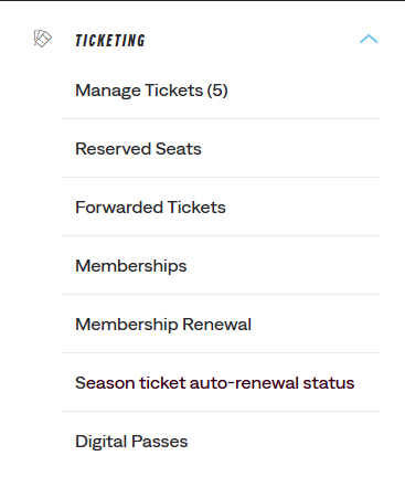 Having logged in, click on the account icon and head to your account history by selecting view account menu > ticketing > Season ticket auto-renewal status